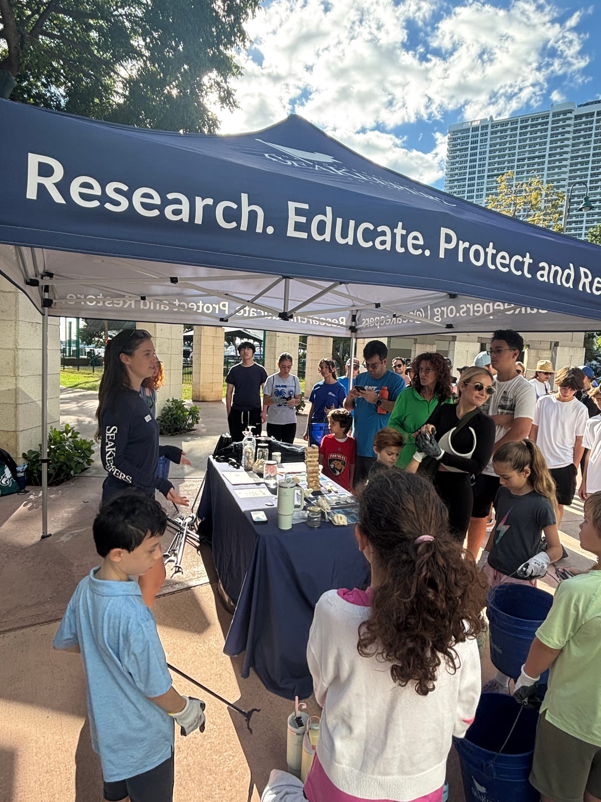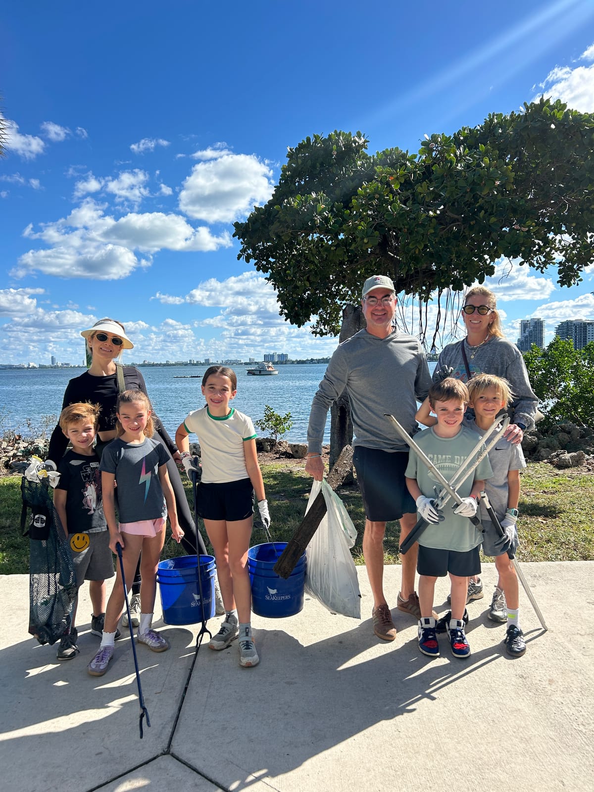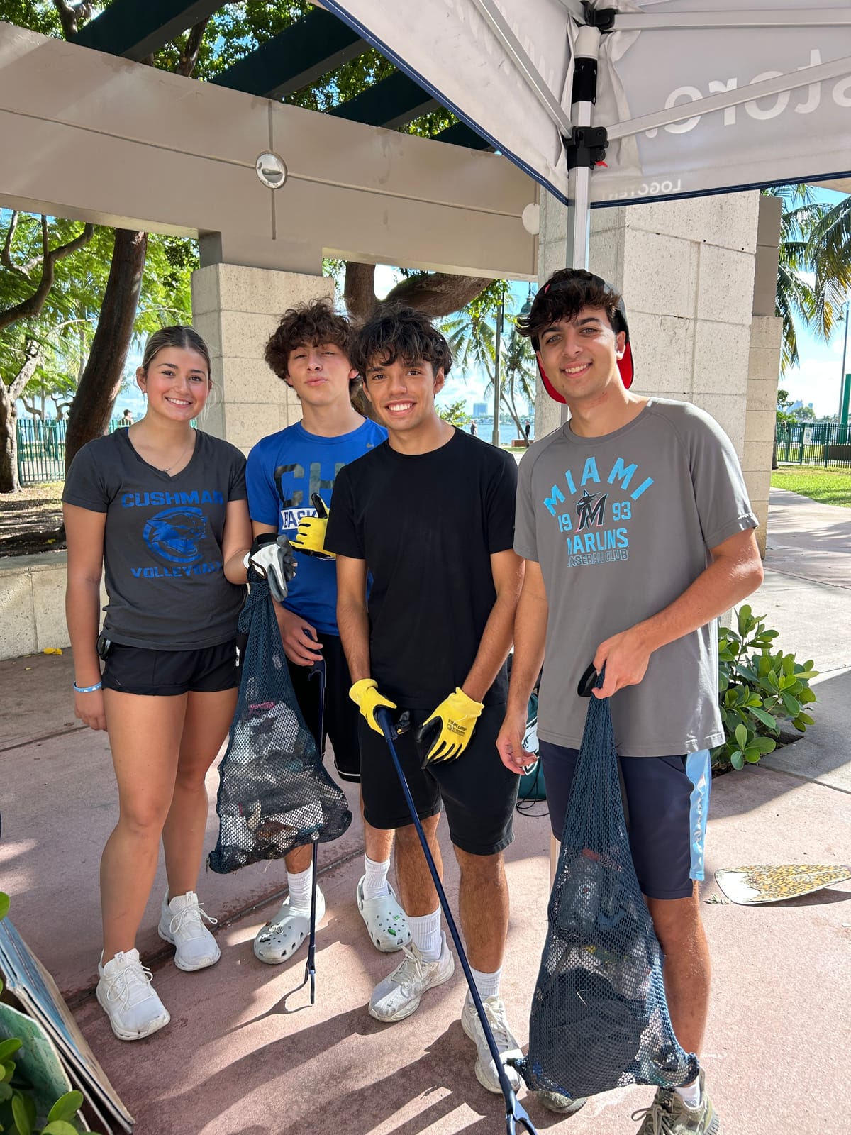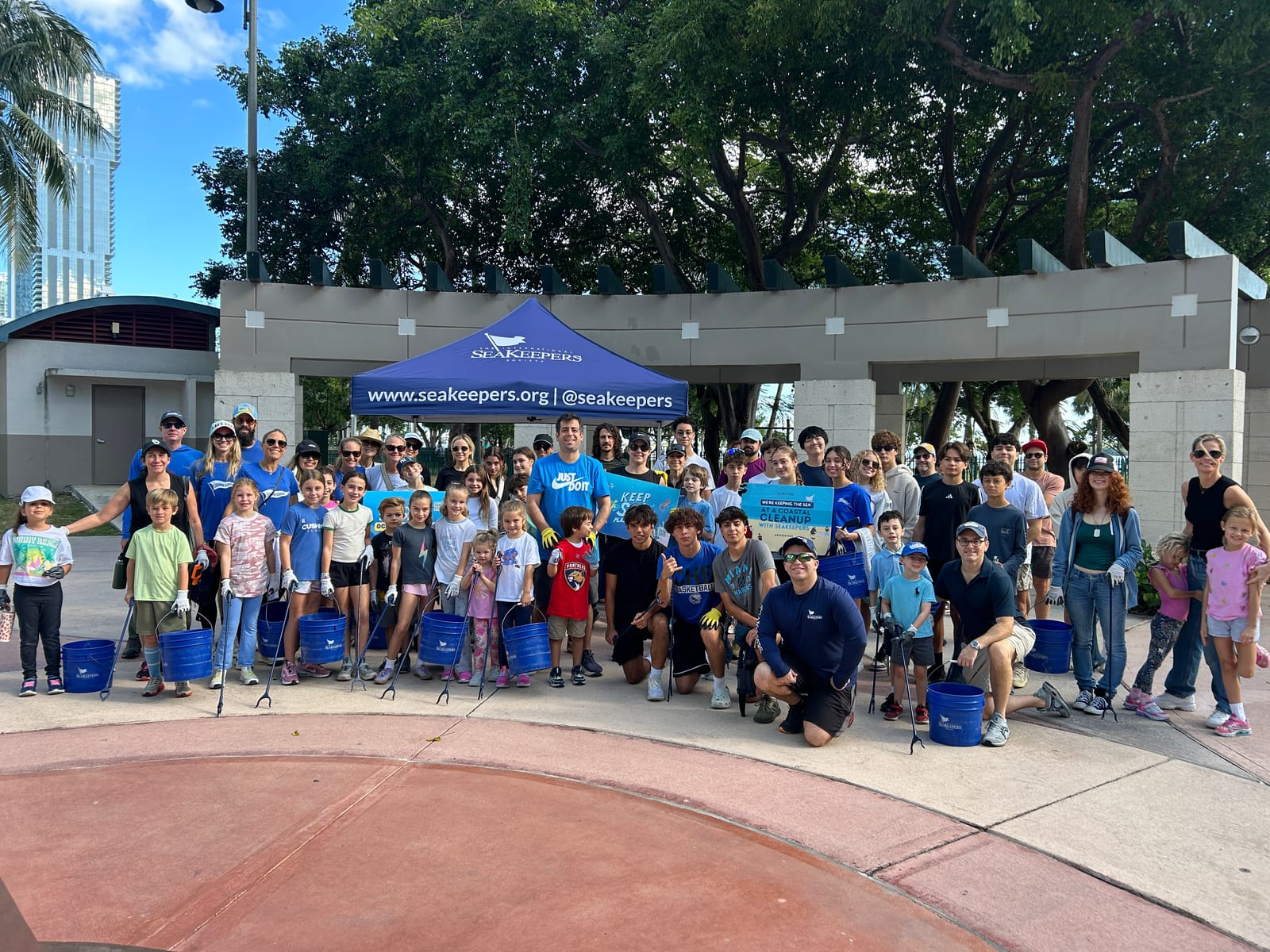 On Saturday, November 15, 2025, The International SeaKeepers Society partnered with The Cushman School to engage students, parents and Cushman community members in a coastal cleanup at Margaret Pace Park. We were joined by 57 dedicated volunteers at the entrance of the park, where they listened to a safety briefing, grabbed protective gear, and set out to clean up the shoreline. Margaret Pace Park lies directly on the coast of Biscayne Bay, and despite regular cleanup efforts at this site, lots of debris accumulates and enters the Bay. The park’s urban location as the proximity of heavily trafficked picnic islands results in the shoreline being inundated with trash from all sides, putting the nearby marine life at risk, such as the stingray some volunteers spotted! Within two hours, our volunteers had returned many times to empty their bags and buckets which were full to the brim of things like plastic and glass bottles, aluminum cans, and soft plastic food wrappers. Some volunteers even came back with large objects like an abandoned paddle and waterlogged blankets. By the end of the event, our volunteers had removed over 182 pounds of trash which was placed in garbage bags and properly disposed of. When they were done, many volunteers participated in educational activities such as Sink or Float and marine science trivia jenga to learn more about the impact of marine debris on our ecosystem. We are so thankful to all the members of the Cushman community who came out to do their part for our ocean, and we look forward to collaborating with them again next year!