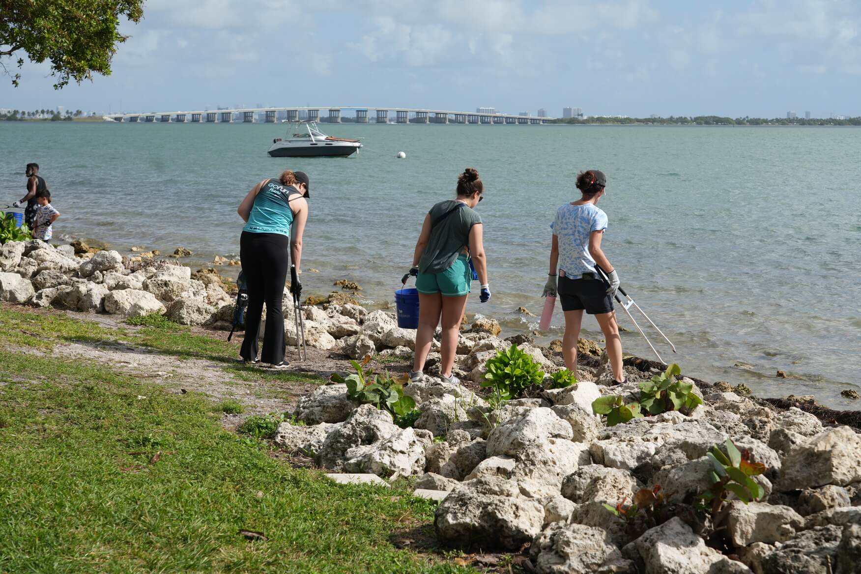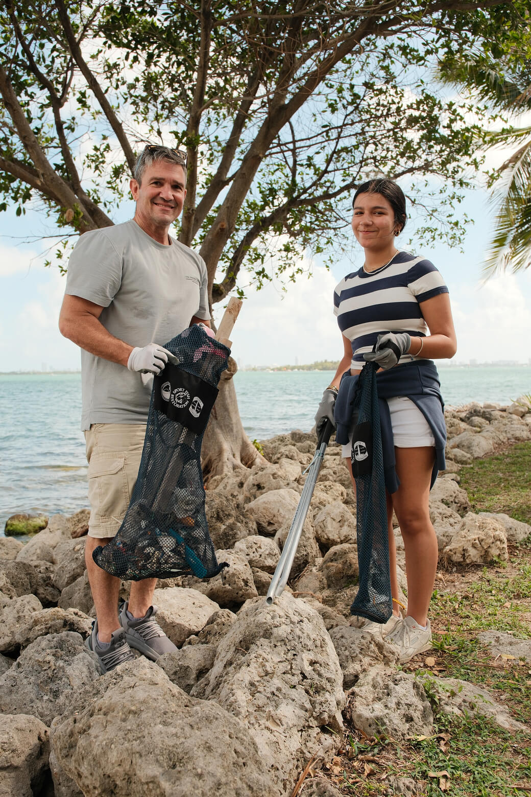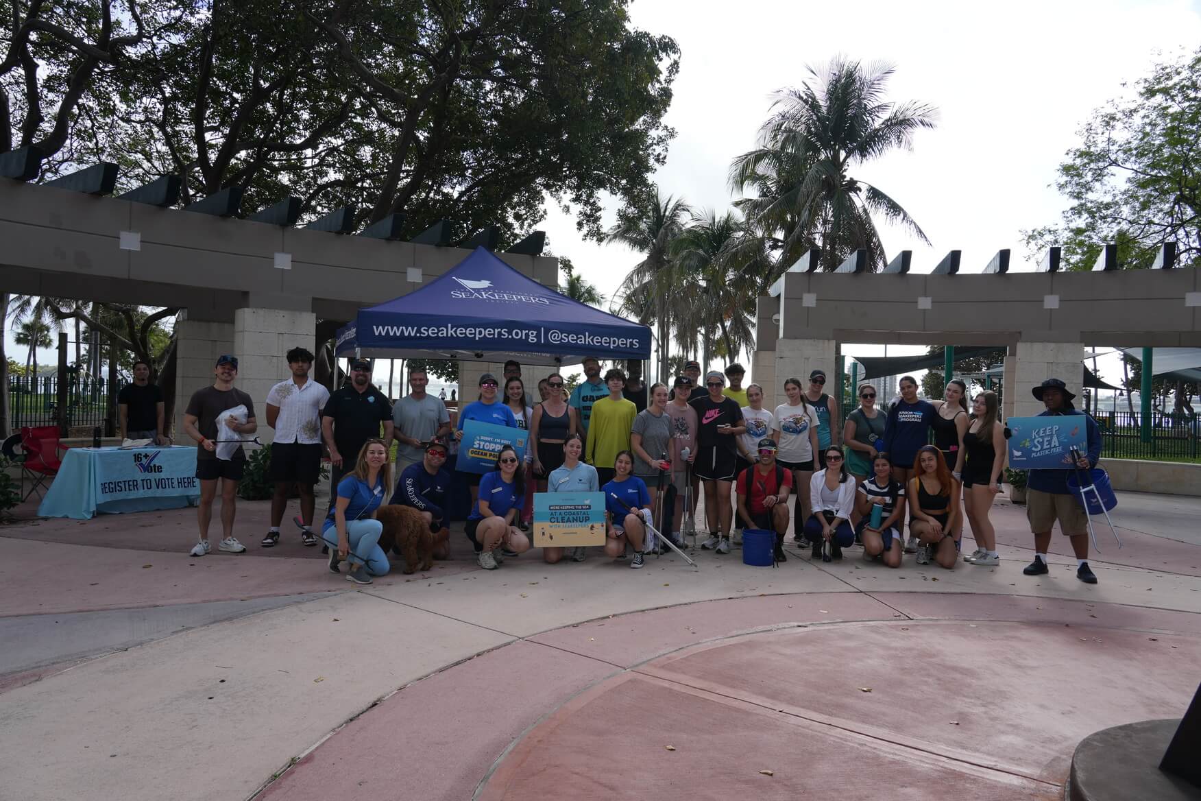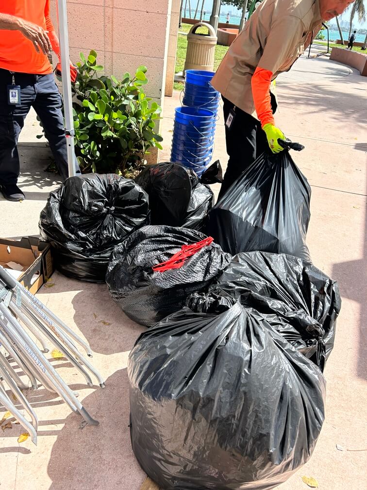 On Saturday, March 7, 2026, The International SeaKeepers Society partnered with Biscayne Neighborhoods Association (BNA) for the quarterly Own Your Block cleanup at Margaret Pace Park. We were joined by 32 volunteers at the park who gathered to help remove trash from the park, including the grass, the mangroves, the rocky shoreline, and the shallow water of Biscayne Bay. This park’s coastal location and high foot traffic make it a hotspot for marine debris, with trash from the park easily washing into the bay with windy conditions. The close proximity of Pace Picnic Island, a popular party island for boaters, causes an influx of trash into the water, which tends to wash up on the coast of the park. After a safety briefing, volunteers grabbed gloves, pickers, buckets, and bags, and headed out across the park to do their part to mitigate this debris crisis. Within two hours, our volunteers had collected more than 140 pounds of trash which was removed from the park and properly disposed of. Thanks to volunteers collecting data with Marine Debris Tracker, we were able to learn that the top items they found were cigarette butts and cigar tips, bottle caps, and plastic fragments. These small items leach chemicals into the environment as they break down, and can easily be ingested by marine life, leading to illness and possibly death. Thanks to our volunteers’ hard work, we know that much of this trash has been diverted from its path to the ocean. We are so grateful to Biscayne Neighborhoods Association for their partnership, City of Miami District 2 Commissioner Damian Prado for his team’s help removing the bagged trash, and to our volunteers for all their hard work. We look forward to the next Own Your Block cleanup and hope to see you there!
