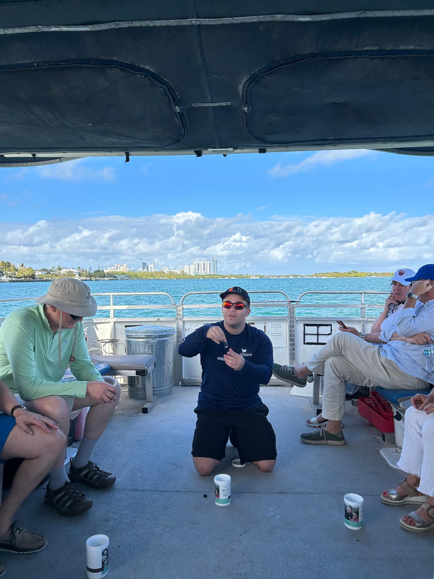 On February 17th, 2026, The International SeaKeepers Society hosted 15 executives from Harvard Advanced Leadership Initiative for a Floating Classroom experience onboard DISCOVERY Vessel River Queen. Departing from FIU’s Biscayne Bay campus into the beautiful bay water, our participants listened to a quick safety briefing from our vessel Captain JD before diving into South Florida ecology. After previous morning discussions our group encountered with the University of Miami and Miami-Dade County officials, we continued with the importance of seagrass meadows, coral reefs, mangroves and more. Through brief encounters with dolphins and a manatee our group delved into questions on marine mammal recognition, waterway dredging, boat regulations, and specifically water quality. Our Educational team wrapped up with our Earth Echo water quality testing kits to visually display their knowledge and questions, measuring key parameters such as temperature, pH, and turbidity. Our team was presently surprised to see continued strong dissolved oxygen levels given the recent temperature rise in South Florida. We wanted to give a huge thank you to Harvard Advanced for a stimulating afternoon and hope to collaborate again soon!