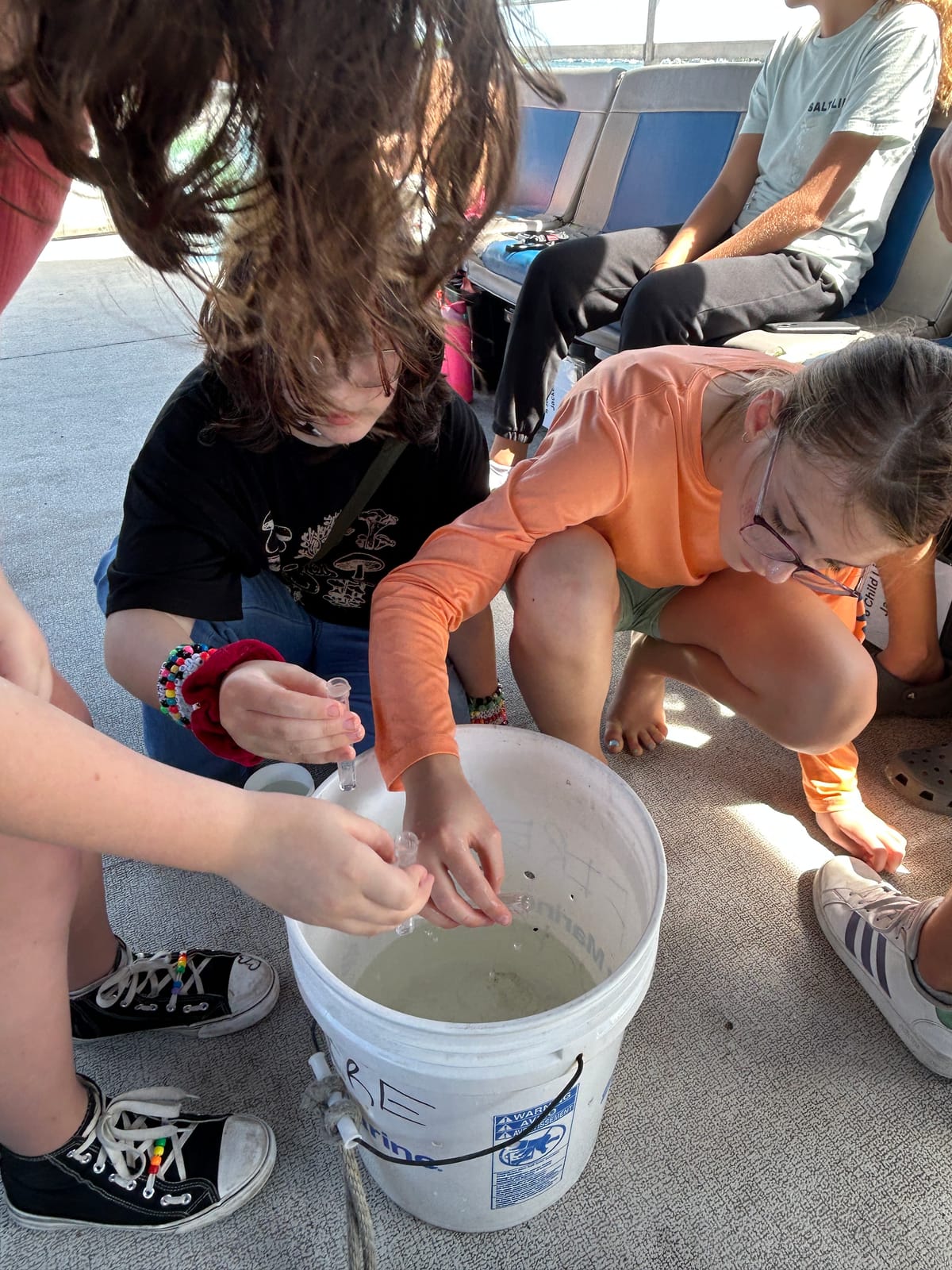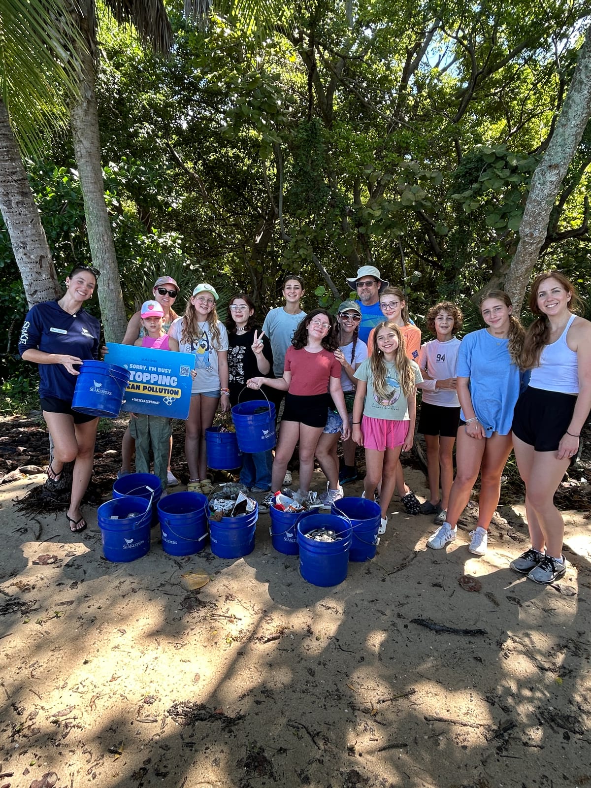 On Monday, October 6, 2025, The International SeaKeepers Society Educational Outreach team hosted 13 students and parents from Millpond Middle School Homeschool Co-op for a Floating Classroom onboard DISCOVERY Vessel River Queen. After departing the marina, we headed South in the bay while discussing Biscayne Bay’s function as Miami’s watershed, and the impact of urbanization and pollution on the bay’s health. Water quality concepts were introduced, and using our Earth Echo kits, students split into groups and performed tests for temperature, pH, dissolved oxygen level and turbidity. We were pleased to see dissolved oxygen levels of about 6 ppm, much higher than the values we often see in the bay during the summer. After discussing how water quality tests can be indicators of pollution events or algal blooms in the bay, we headed to Sandspur Island for our second activity of the day. The group was given an overview of the island and the marine debris crisis created by visitors. The students were handed gloves and buckets and set off to collect trash found on the island and its shoreline. In less than half an hour, the students collected over 25 lbs of trash, filling an entire garbage bag with waste to be removed from the island. While we headed back to the marina, we discussed the threats plastic pollution can pose to the water quality and the marine creatures in Biscayne Bay, and how we can make more sustainable choices. SeaKeepers is grateful to the students and parents of Millpond Middle School Homeschool Co-op for joining us, and to D/V River Queen for making the outing possible!