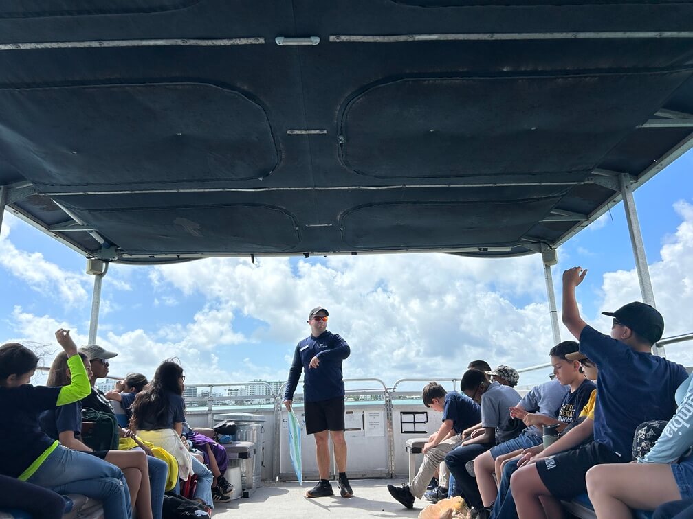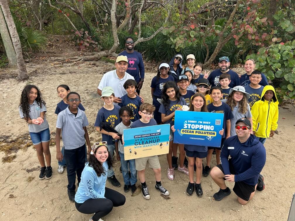 On March 3rd, 2026, The International SeaKeepers Society hosted a floating classroom experience with 22 4th and 5th grade students as well as 5 educators from Somerset Preparatory Academy. We met our students at FIU’s Biscayne Bay Campus where after a brief introduction from our Educational Outreach Manager, Jack, we hopped aboard DISCOVERY Vessel River Queen and headed out for a beautiful day on Biscayne Bay. We started our day with an interactive discussion on the major coastal ecosystems that play critical roles in South Florida, namely coral reefs, mangroves, and seagrass meadows. Our students took turns naming native animals and properties of each ecosystem, and even got to hold and make physical observations of some coral samples our team has collected at beaches all over Miami. We then transitioned into a discussion about water quality before letting the students get their hands dirty, using our Earth Echo Water Challenge kits to test parameters of Biscayne Bay such as dissolved oxygen, temperature, pH, and turbidity. So far through 2026 we have consistently seen high dissolved oxygen levels and stable, healthy pH and temperature, which is extremely reassuring and indicates stable ecosystem health. We finished our day with a short island cleanup at Sandspur Island, where in just half an hour our students were able to remove more than 59 pounds of trash, including discarded microplastics and charcoal from abandoned or dumped grills left on the island. We give a huge thank you to the students of Somerset Academy for their hard work, to the chaperones and educators for helping us lead the event, and to the team of D/Y River Queen for a great day on the water!