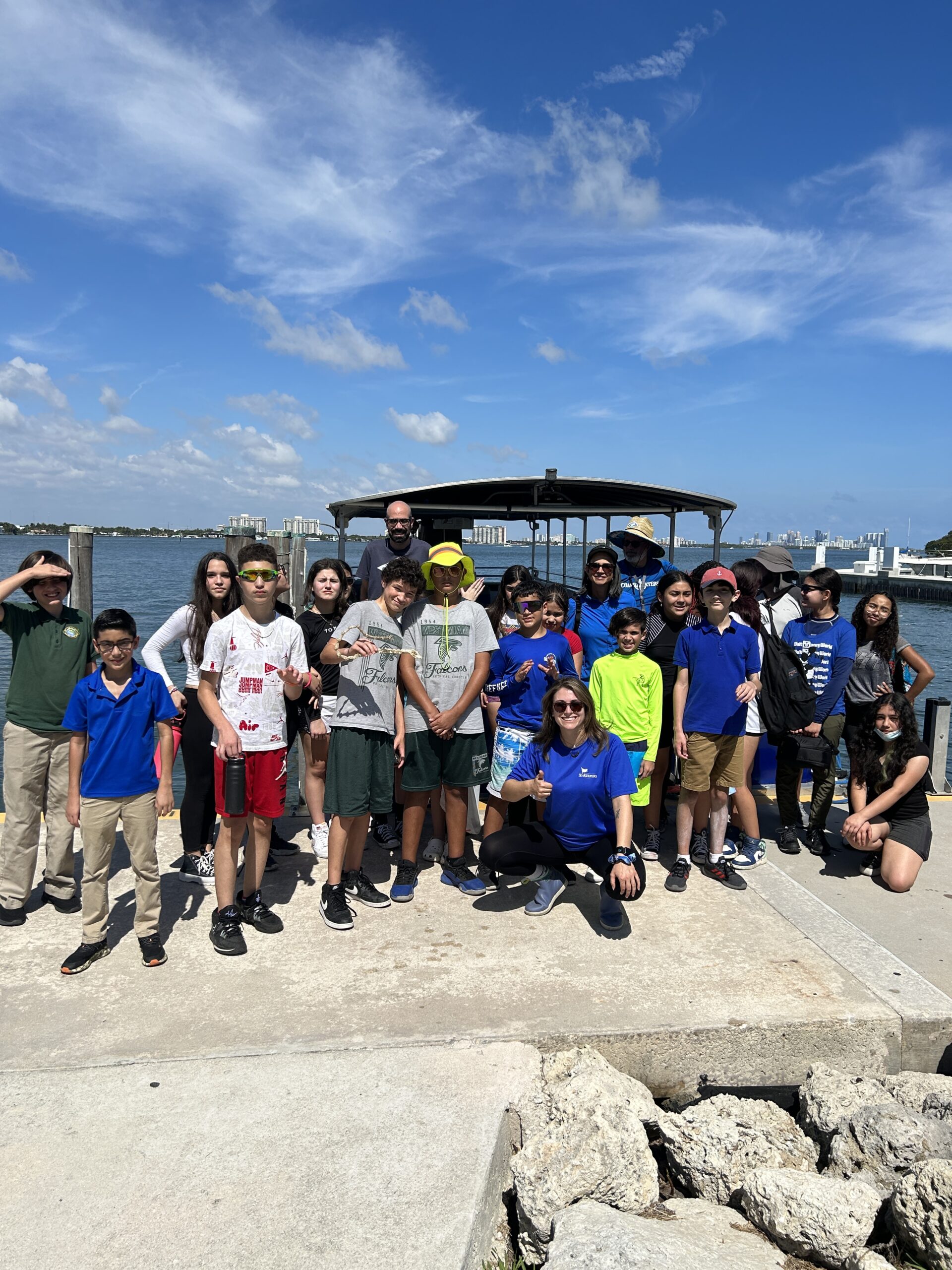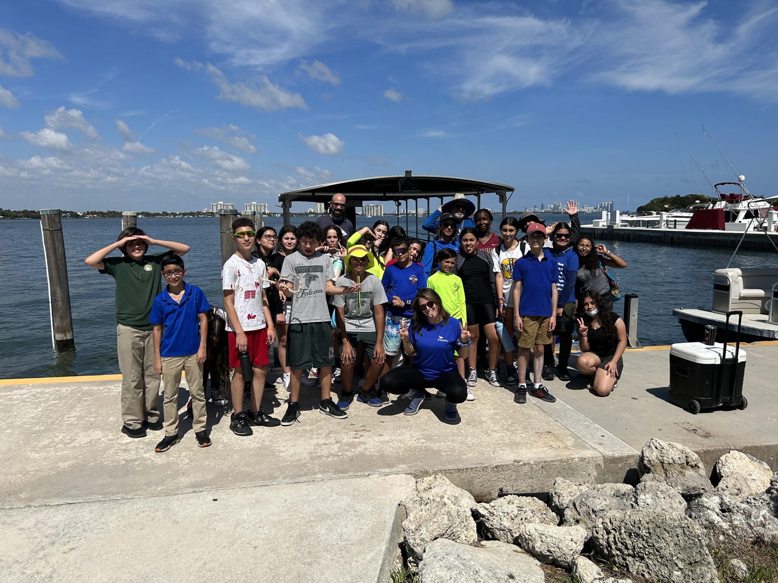 On Friday, February 24th, 2023, The International SeaKeepers Society hosted our second floating classroom of 2023! For this trip we hosted a group of 23 students from West Miami Middle School aboard DISCOVERY Yacht River Queen. We met our students and chaperones at Pelican Harbor Marina, where we were greeted by a pod of dolphins, and made our way down Biscayne Bay to the mouth of Little River while discussing how the local watershed functions and results in different types of pollution in the bay. Our students from West Miami Middle were excited to discuss the impacts urban areas have on adjacent waterways, and were even rewarded by sighting some local seabird species including cormorants and egrets! Using EarthEcho kits, students and chaperones had the opportunity to get their hands on some real science by measuring water quality parameters temperature, turbidity, pH, and dissolved oxygen level and hypothesizing why these parameters may change throughout the Bay. That’s not all – in typical SeaKeepers style we had a small beach cleanup on Pelican Island, where we enthusiastically collected 55 pounds of trash, and made sightings of a spotted eagle ray, a spotted sea hare, and an upside-down jellyfish on the shoreline! We finished up our floating classroom by identifying the most common (and uncommon) types of trash we found and how we could prevent those types of materials from entering the environment as a result of our everyday choices. The students of West Miami Middle School were a pleasure to work with and we are happy to be able to take another group of local Title 1 students out on the water with the invaluable help of our DISCOVERY Yacht River Queen. We hope that these students were able to leave the floating classroom with a better understanding of how pollution impacts our waterways and how we can prevent different types of pollution in our everyday lives. We had such a great time and hope to host West Miami Middle again in the future!