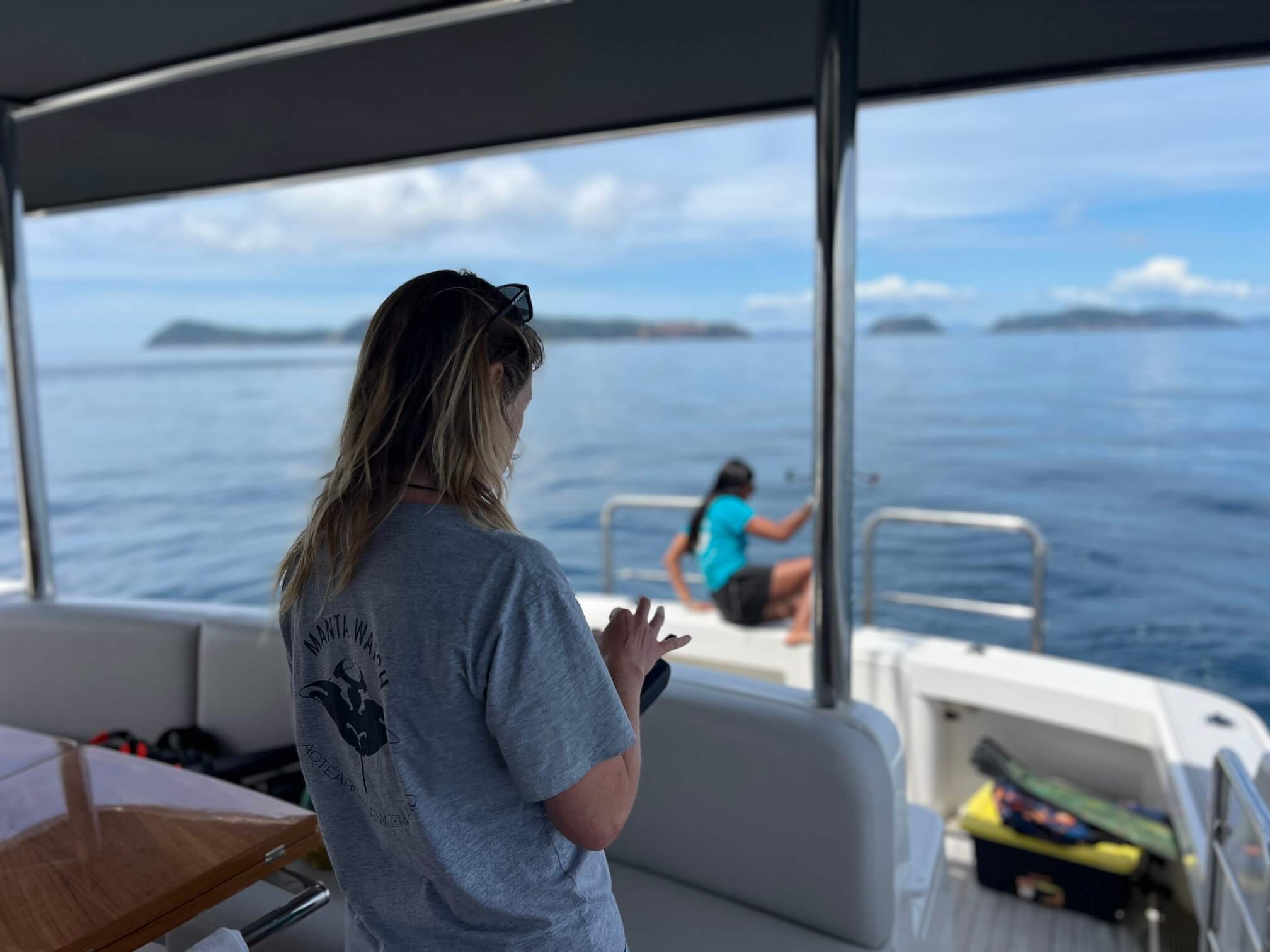 From 6–7 January, SeaKeepers South Pacific joined Manta Watch New Zealand aboard DISCOVERY Yacht Neo for a two-day scientist-led expedition in the Hauraki Gulf. Melissa White, Director of South Pacific, participated alongside the Manta Watch team as the vessel surveyed key offshore areas known to provide suitable conditions for oceanic manta rays. The expedition began off Great Barrier Island (Aotea) and continued south through to Great Mercury Island (Ahuahu), covering a broad stretch of the Gulf.